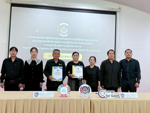 นายองอาจ ซองทุมมินทร์ พัฒนาการจังหวัดสกลนคร เป็นประธานเปิดการประชุม พร้อมลงนามคำรับรองการปฏิบัติราชการ และบันทึกข้อตกลงตัวชี้วัดและค่าเป้าหมายการประเมินผลการปฏิบัติราชการ ประจำปีงบประมาณ พ.ศ. 2569 โดยได้มอบแนวทางขับเคลื่อนงานตามมาตรการปรับปรุงประสิทธิภาพราชการ และชี้แจงรายละเอียดตัวชี้วัดและค่าเป้าหมายให้แก่ผู้บริหาร นักวิชาการพัฒนาชุมชน และเจ้าหน้าที่สำนักงานพัฒนาชุมชนอำเภอ