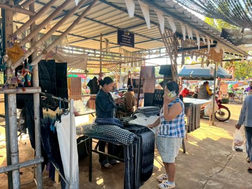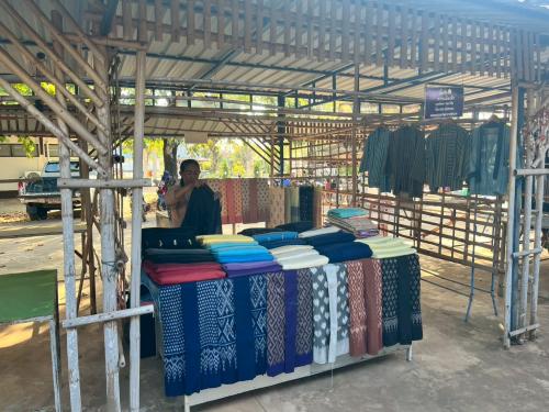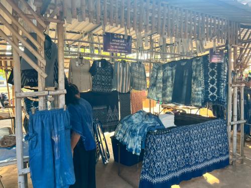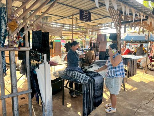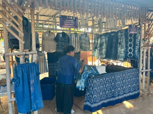 พช.อากาศอำนวย จ.สกลนคร : ส่งเสริมกลุ่มผู้ผลิตผู้ประกอบการ OTOP เข้าร่วมจำหน่ายสินค้าผ้าครามที่ตลาดประชารัฐหน้าที่ว่าการอำเภออากาศอำนวย