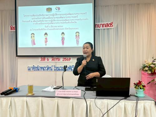 นายองอาจ ซองทุมมินทร์ พัฒนาการจังหวัดสกลนคร มอบหมายให้นางสาวอัสนีย์ พรหมสาขา ณ สกลนคร ผู้อำนวยการกลุ่มงานประสานและสนับสนุน โครงการเพิ่มประสิทธิภาพการปฏิบัติงานกองทุนพัฒนาบทบาทสตรี